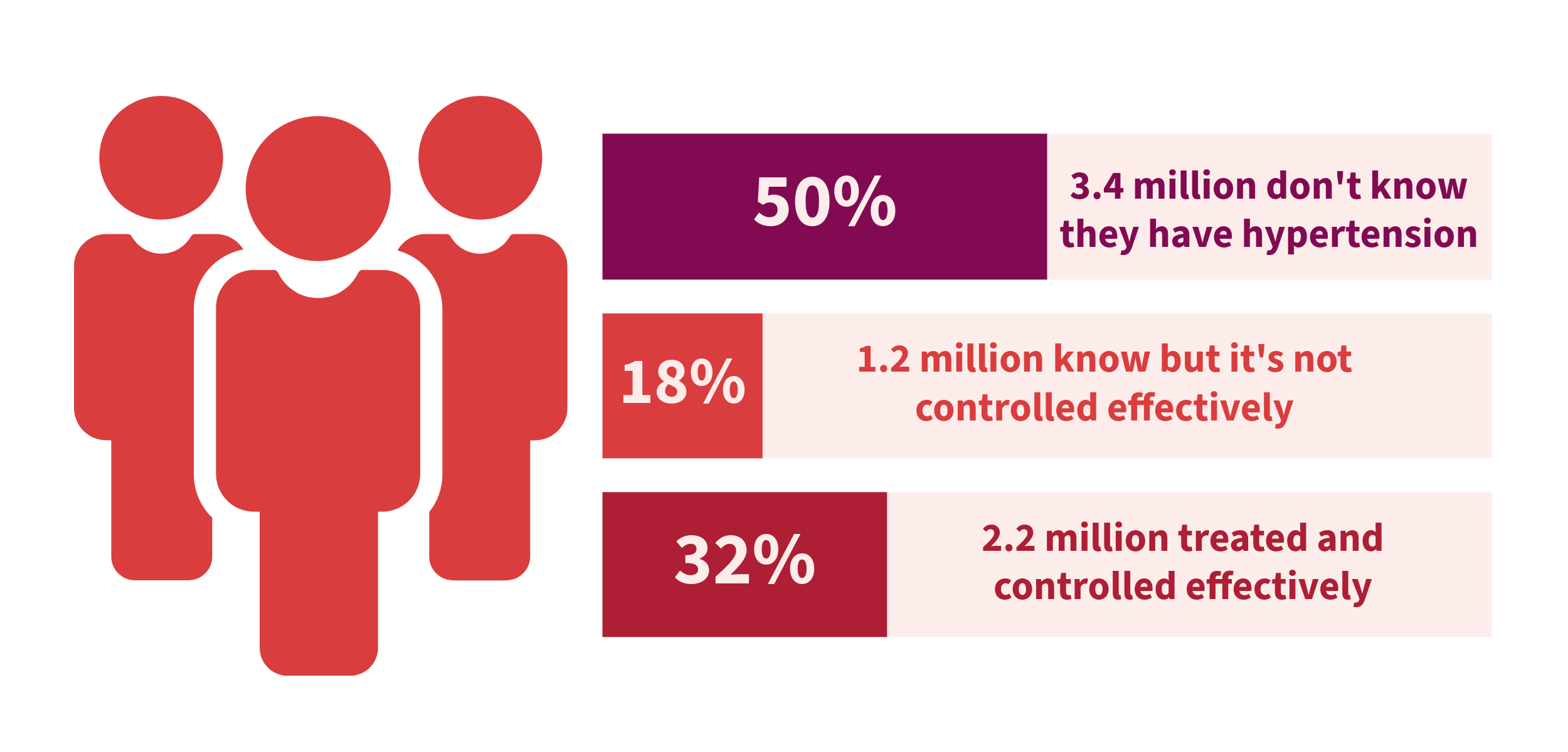 High blood pressure is the leading preventable cause of death in Australia and the leading risk factor for heart attacks and strokes. Of the 6.8 million adults living with hypertension in Australia, only 32% are treated and have their blood pressure controlled effectively.